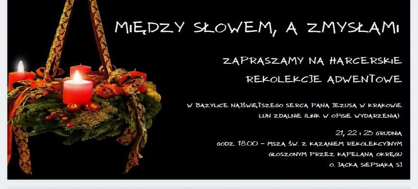 Ojciec Jacek Siepsiak Kapelan Okręgu wraz z Druhem Przewodniczącym, Druhną Komendantką i Druhem Komendantem serdecznie zapraszają instruktorki instruktorów, drużynowe i drużynowych, harcerki i harcerzy starszych na Rekolekcje Adwentowe.