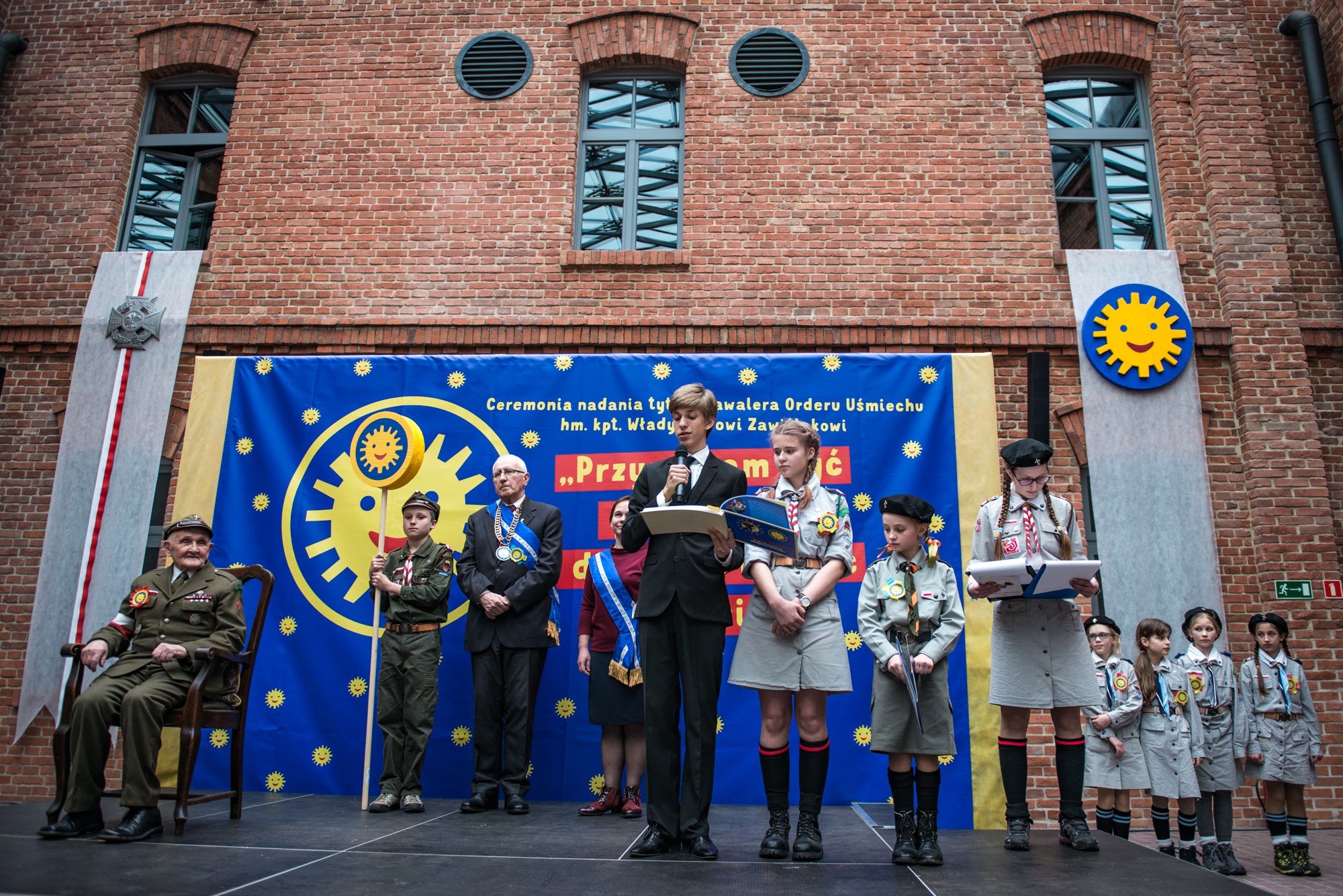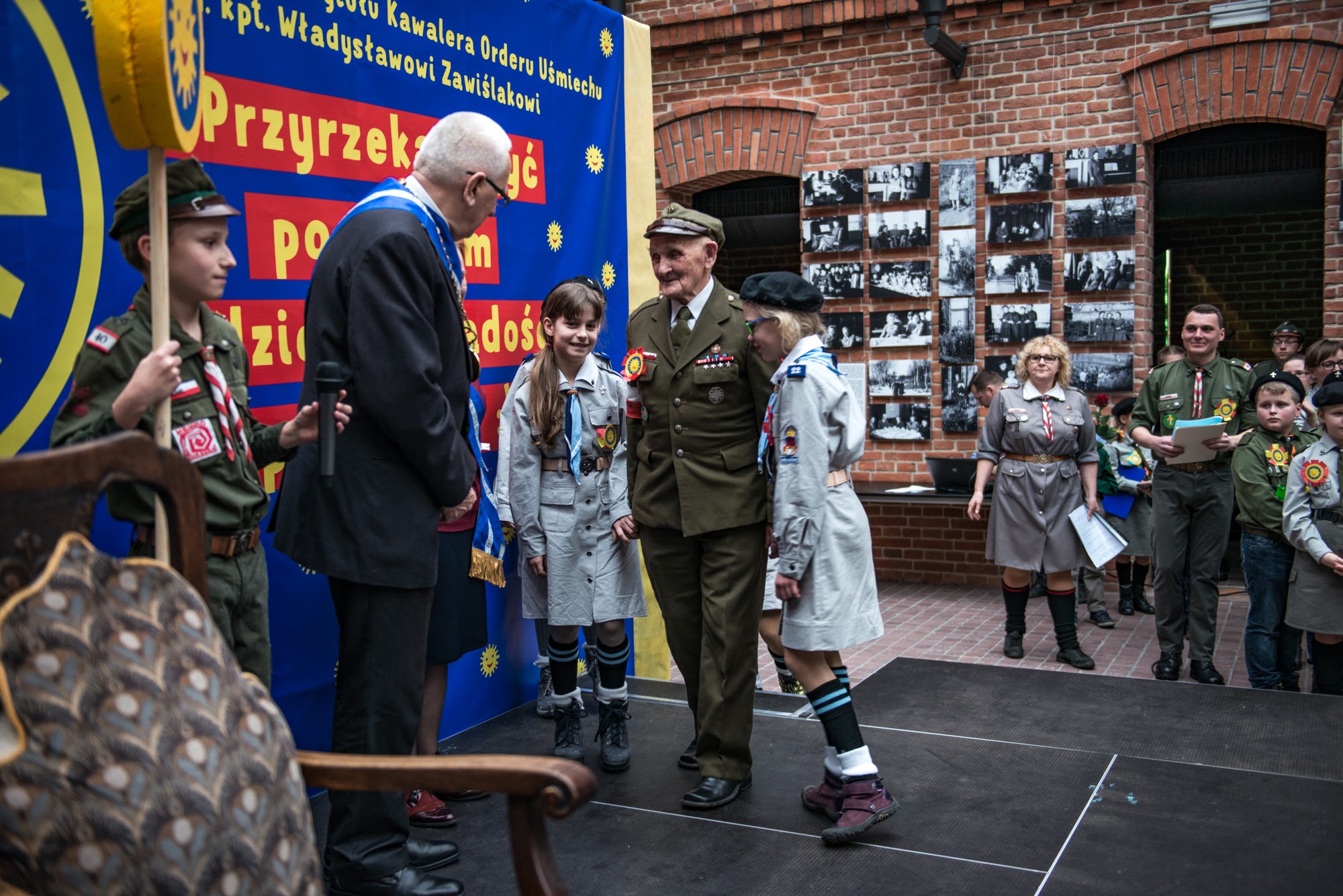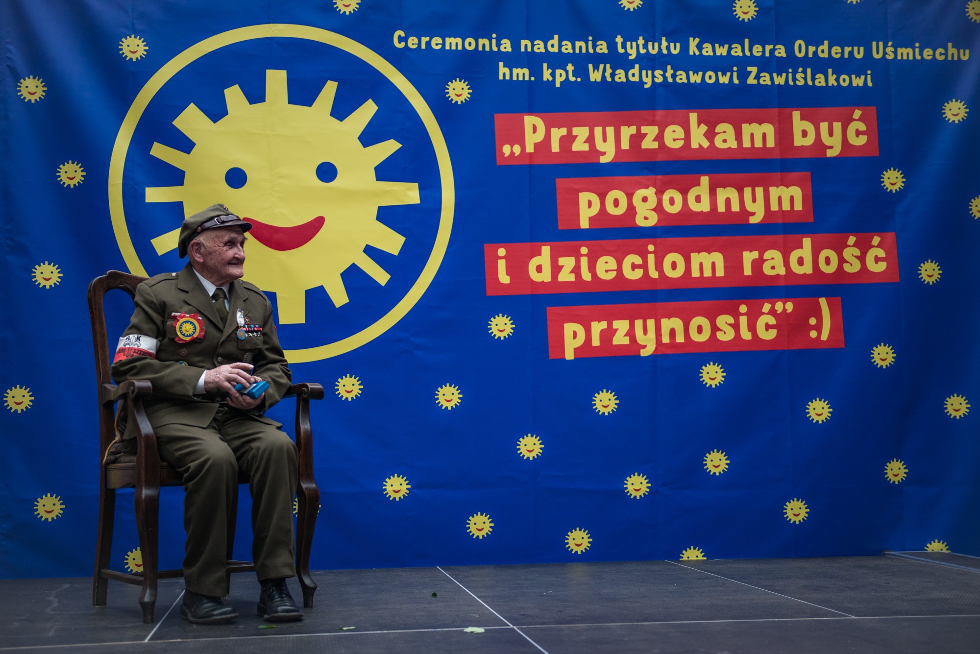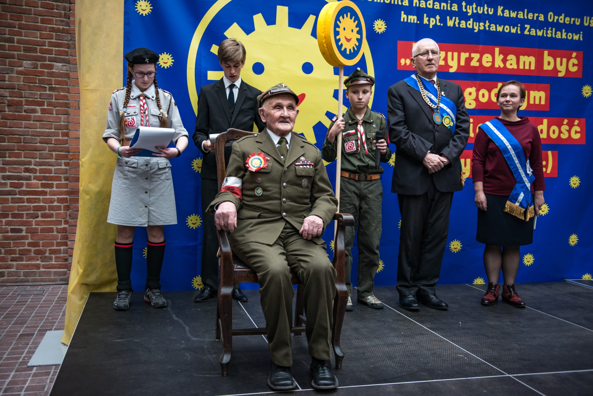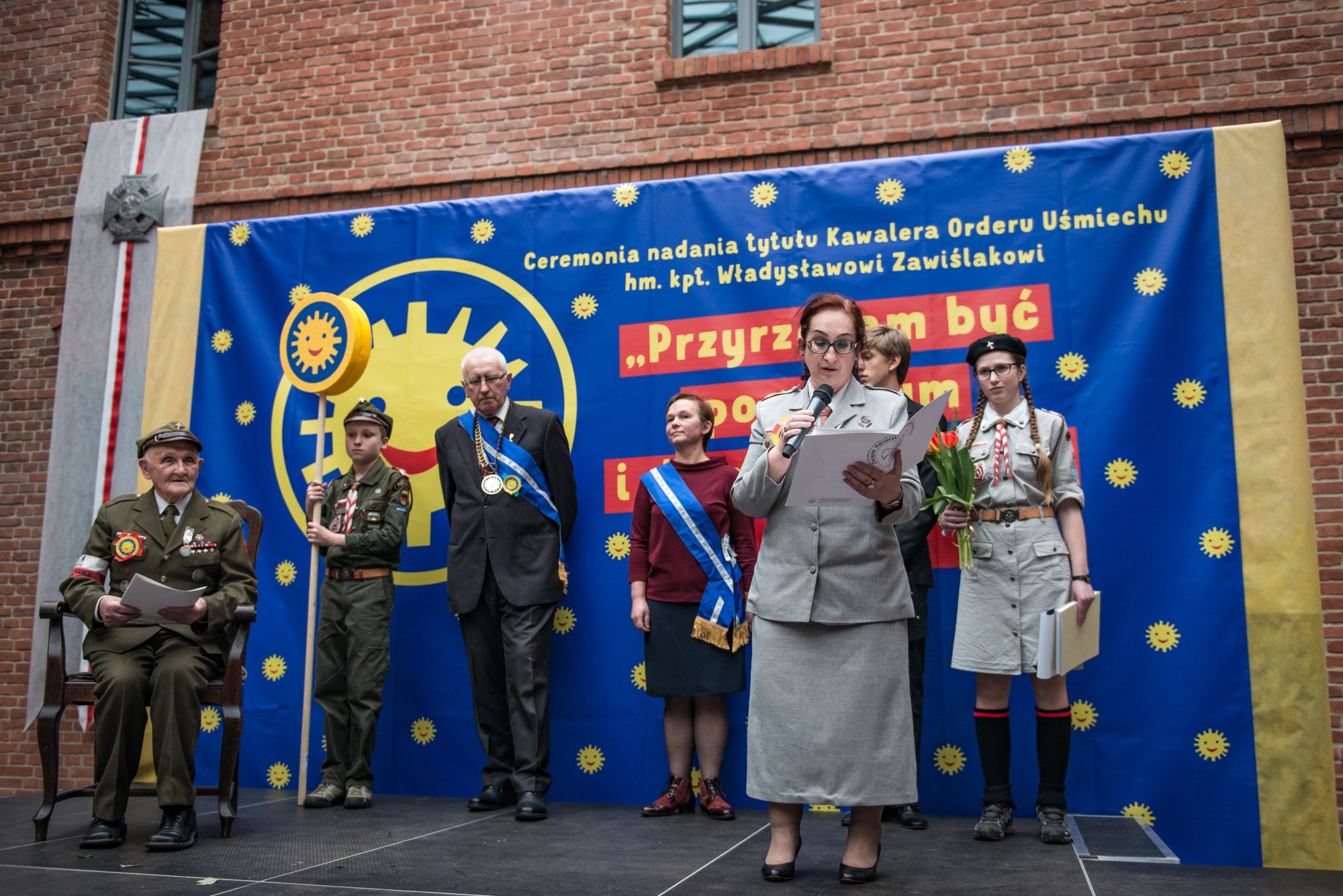 Ceremonia nadania Tytułu Kawalera Orderu Uśmiechu kpt. hm. Władysławowi Zawiślakowi. 21.02.2016 r. Muzeum Armii Krajowej.