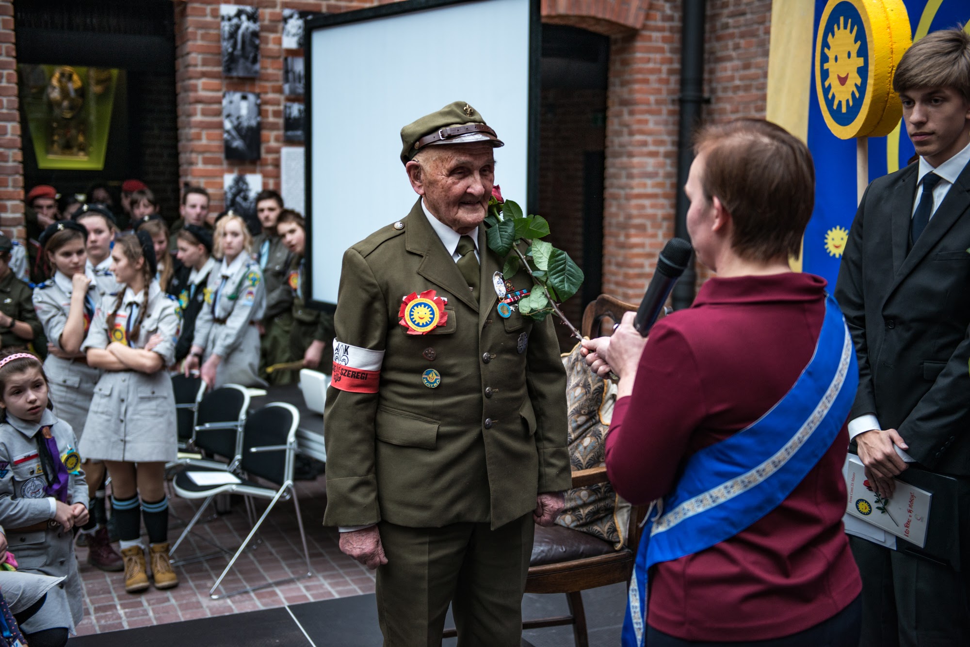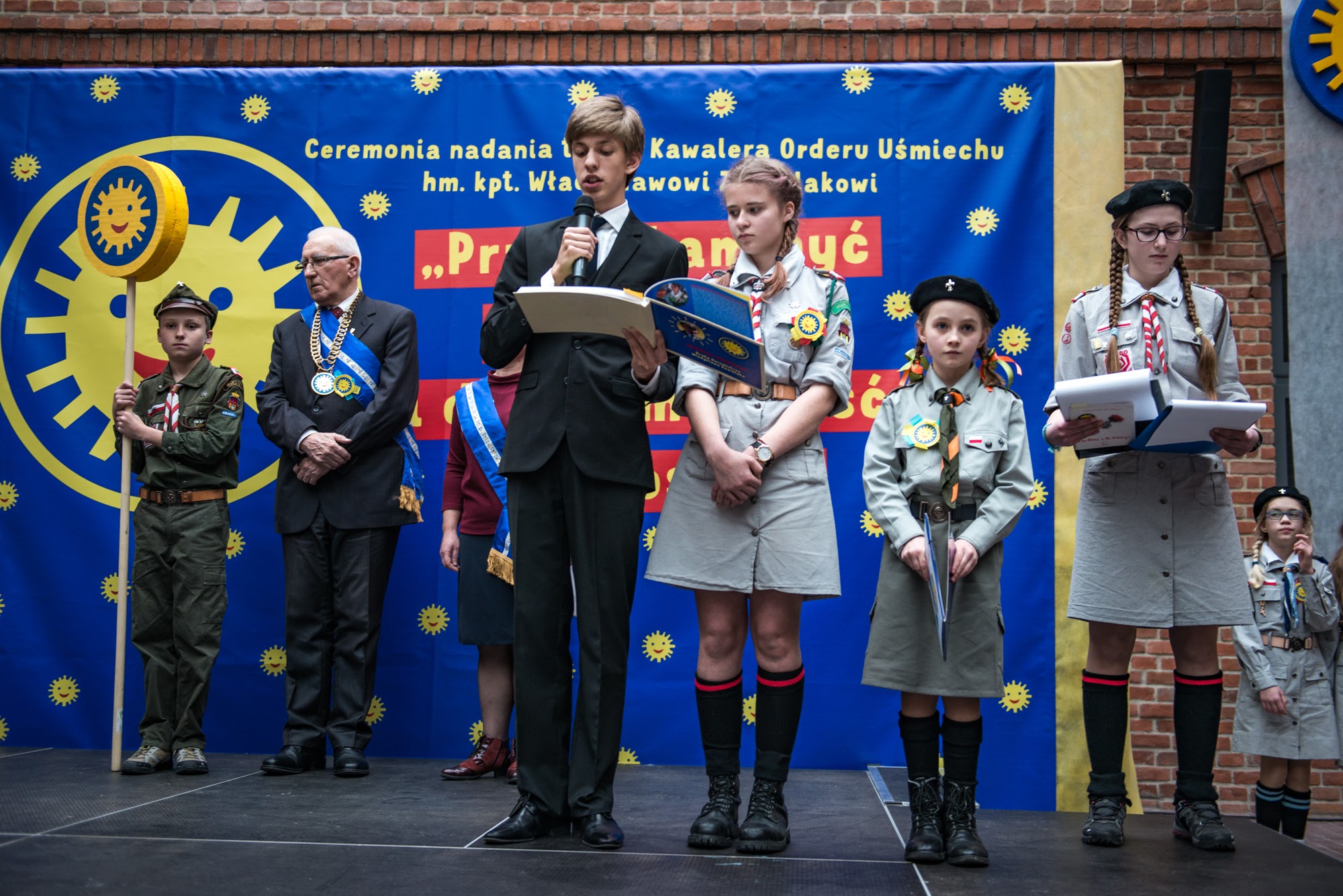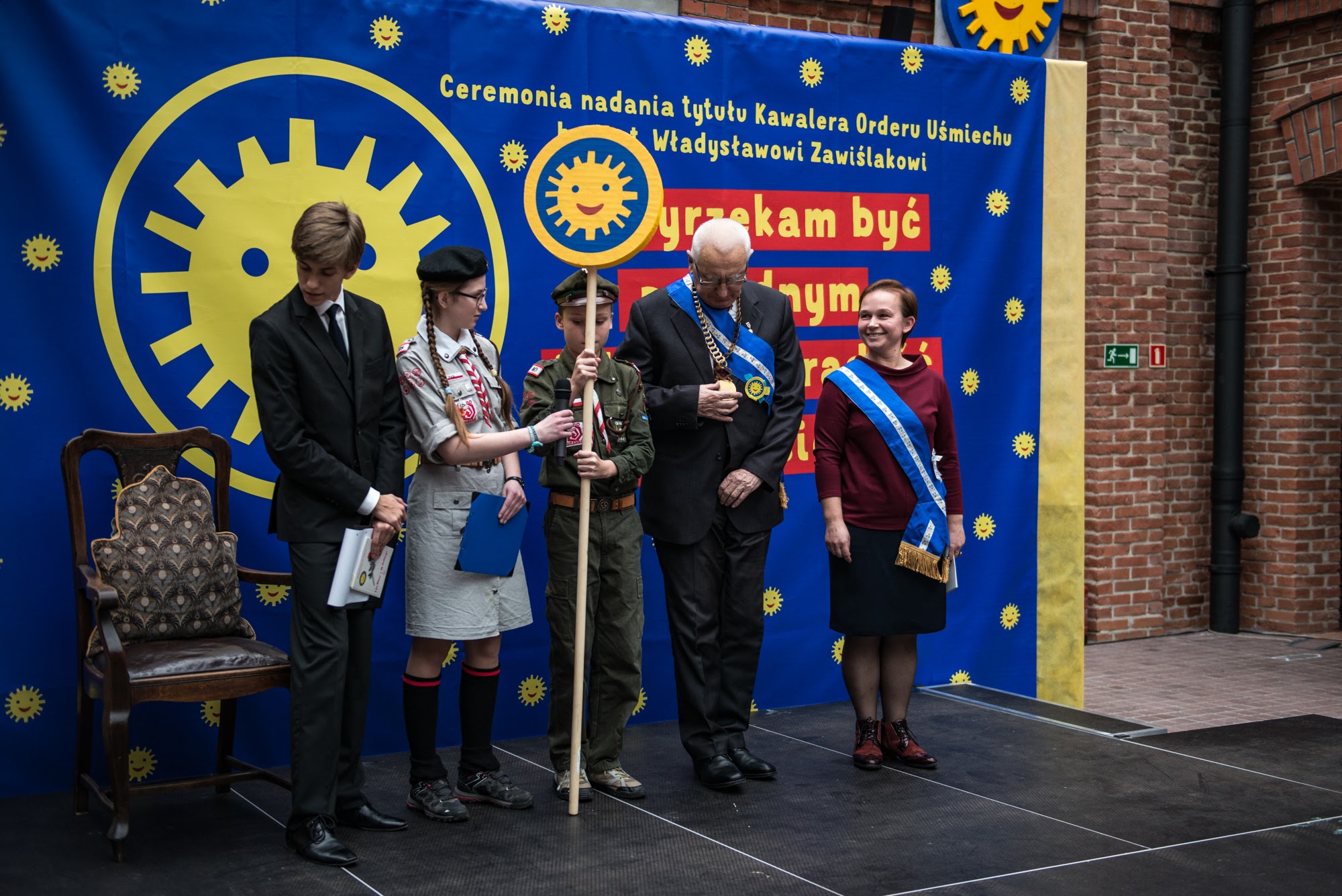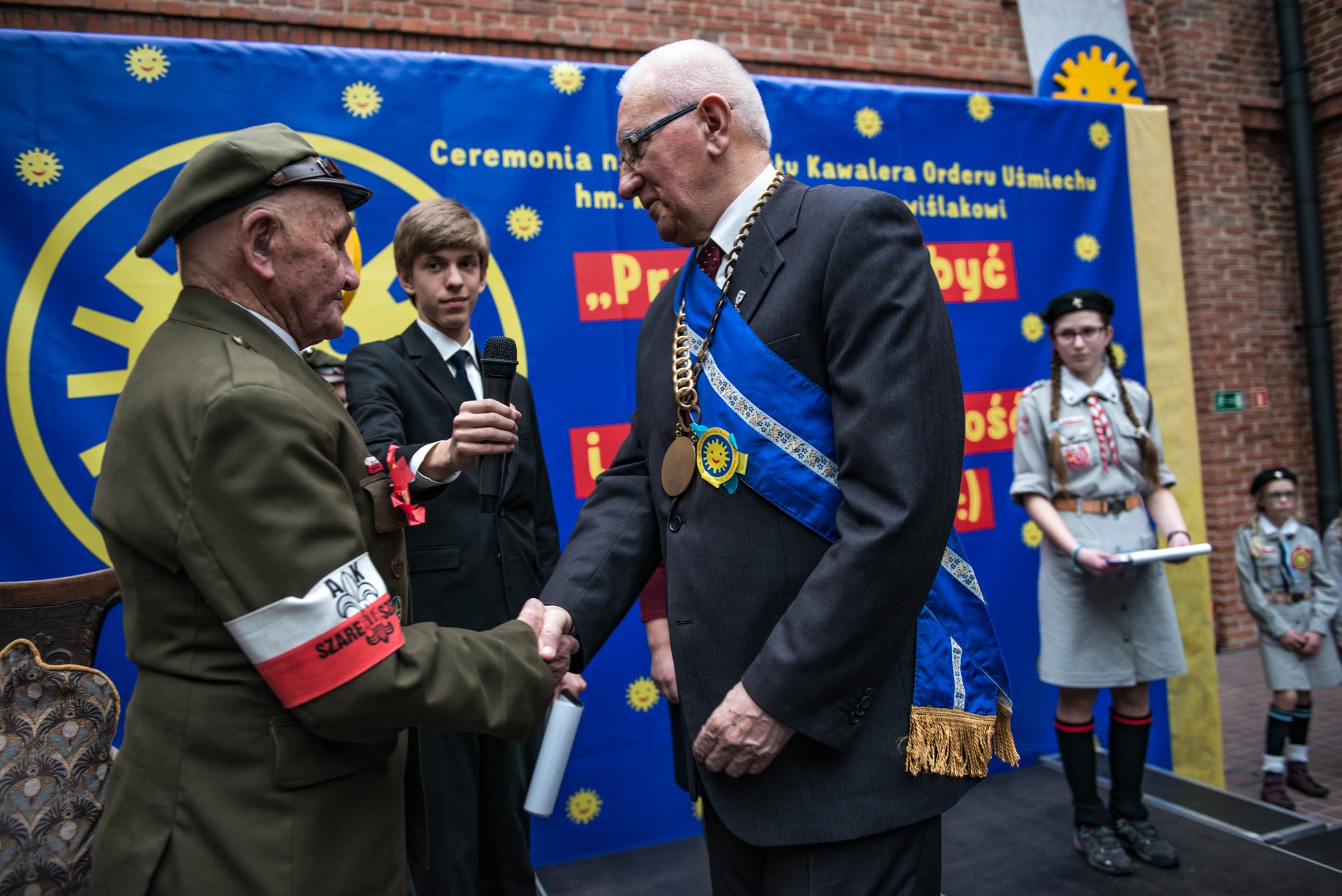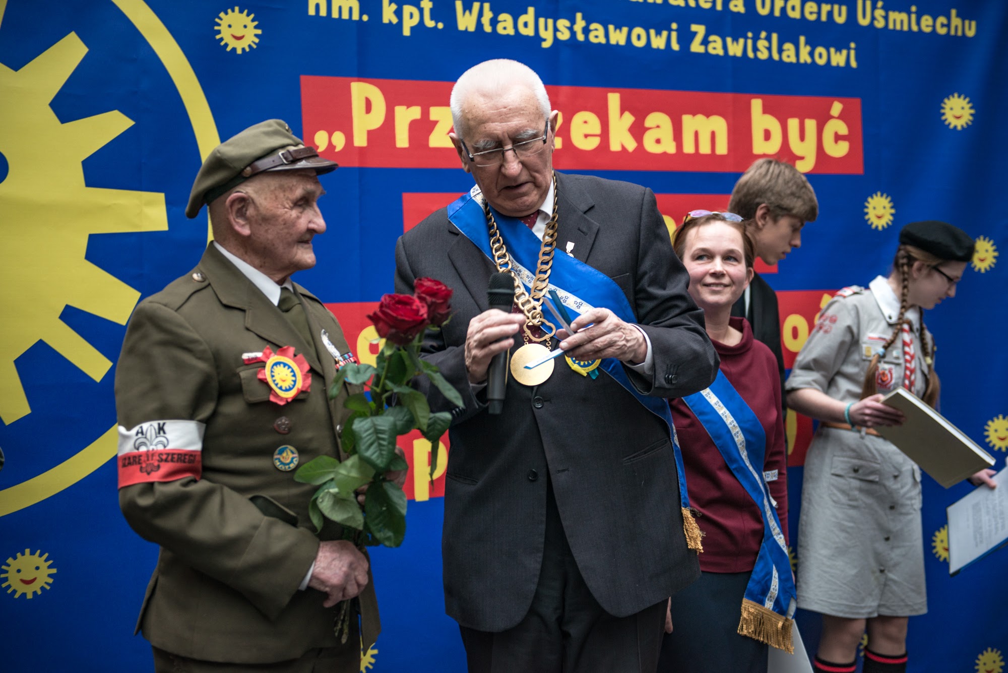 Ceremonia nadania Tytułu Kawalera Orderu Uśmiechu kpt. hm. Władysławowi Zawiślakowi. 21.02.2016 r. Muzeum Armii Krajowej.