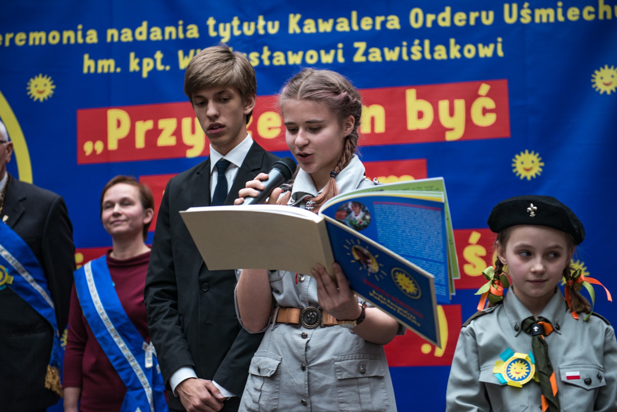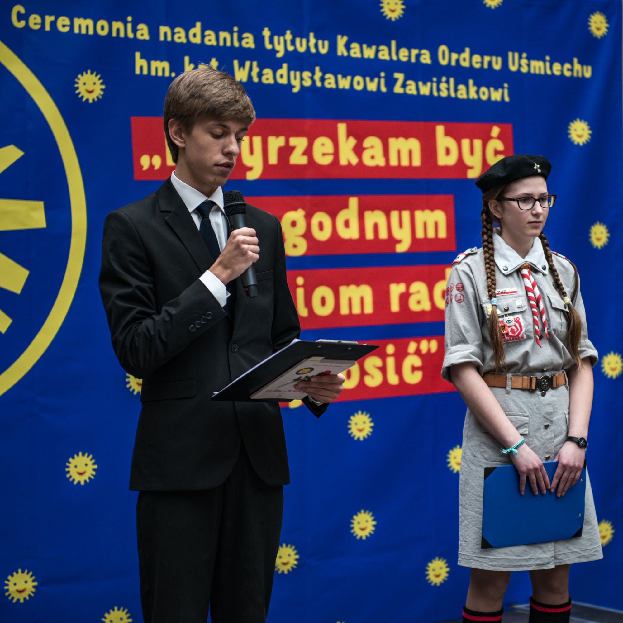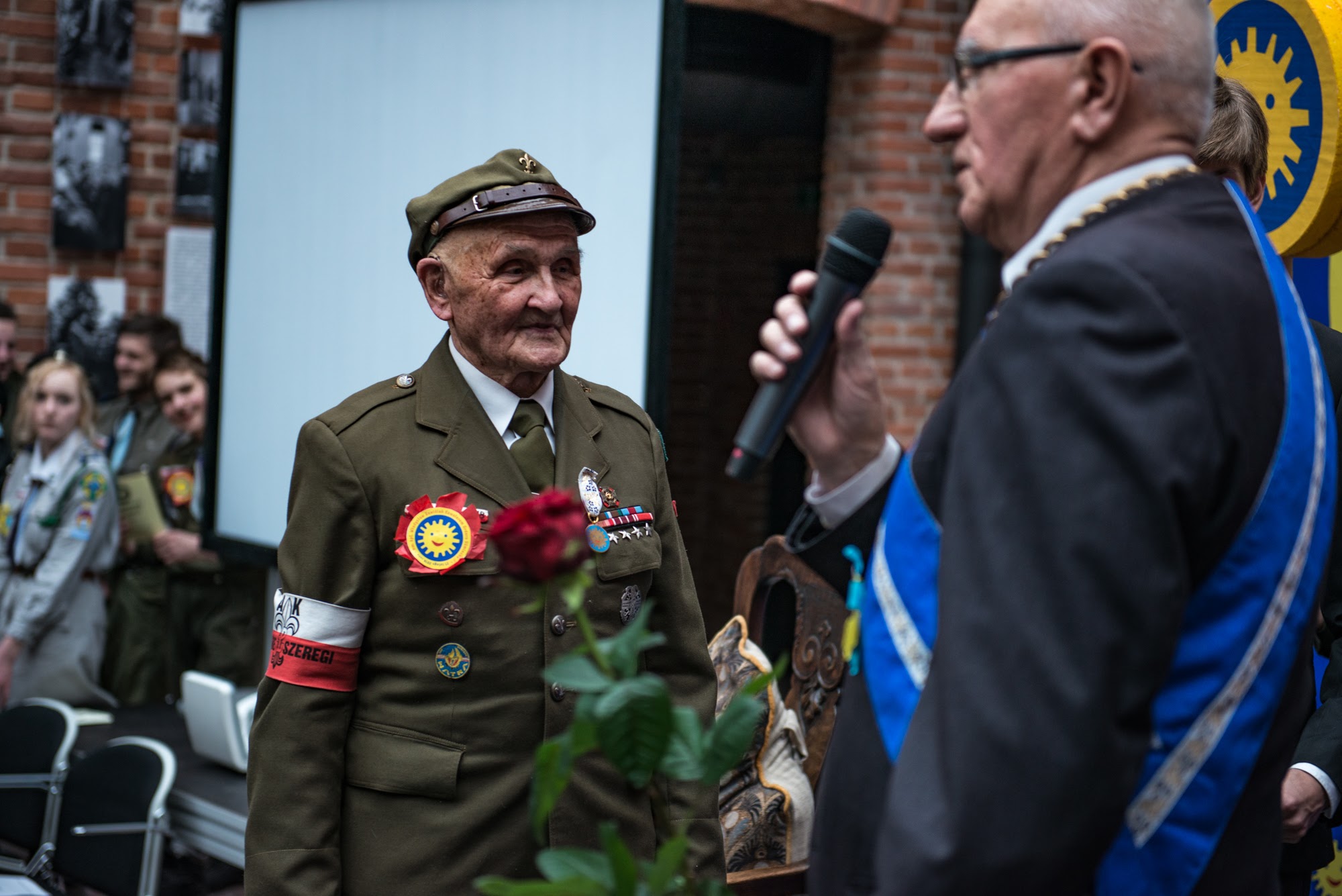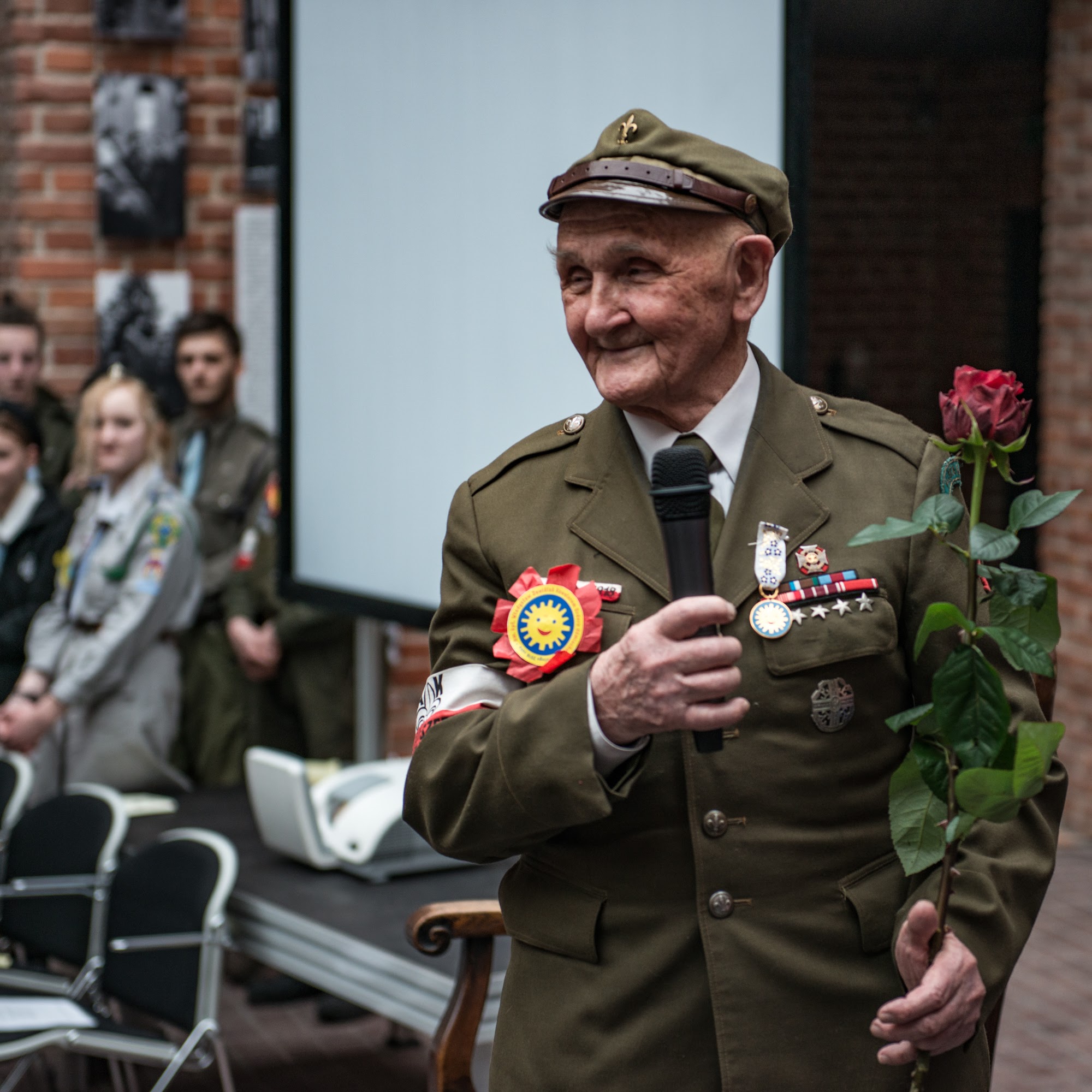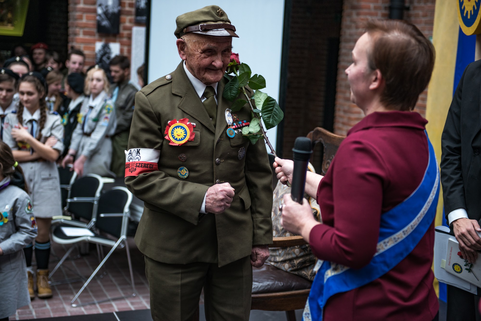 Ceremonia nadania Tytułu Kawalera Orderu Uśmiechu kpt. hm. Władysławowi Zawiślakowi. 21.02.2016 r. Muzeum Armii Krajowej.